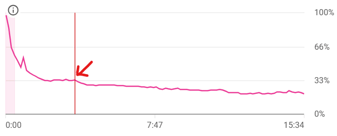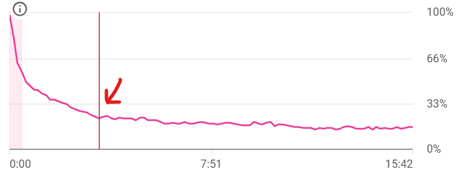 Another way you can pace a video is by how fast the story progresses. On YouTube, it’s important have fast story progression in the first few minutes of the video in order to prevent your audience from clicking away. This is something you need to experiment with though. You can see from the two retention graphs I’ve shown below that I’ve struggled to reduce the drop off in the first 3.30 minutes before the curve flattens out.