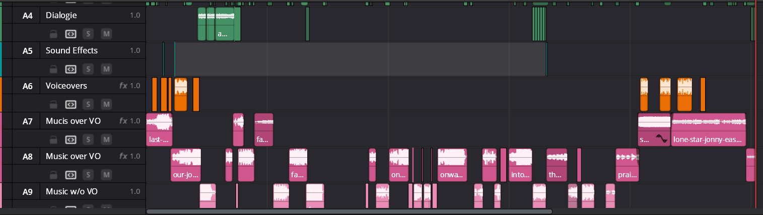 - For the vocal tracks, increase the levels in the frequency range where speech is most prominent (around 2 kHz to 4 kHz). This enhances the dialogue without affecting the entire audio spectrum. Some software (Davinci Resolve, for example) has presets for this which can be a really good way to learn more.