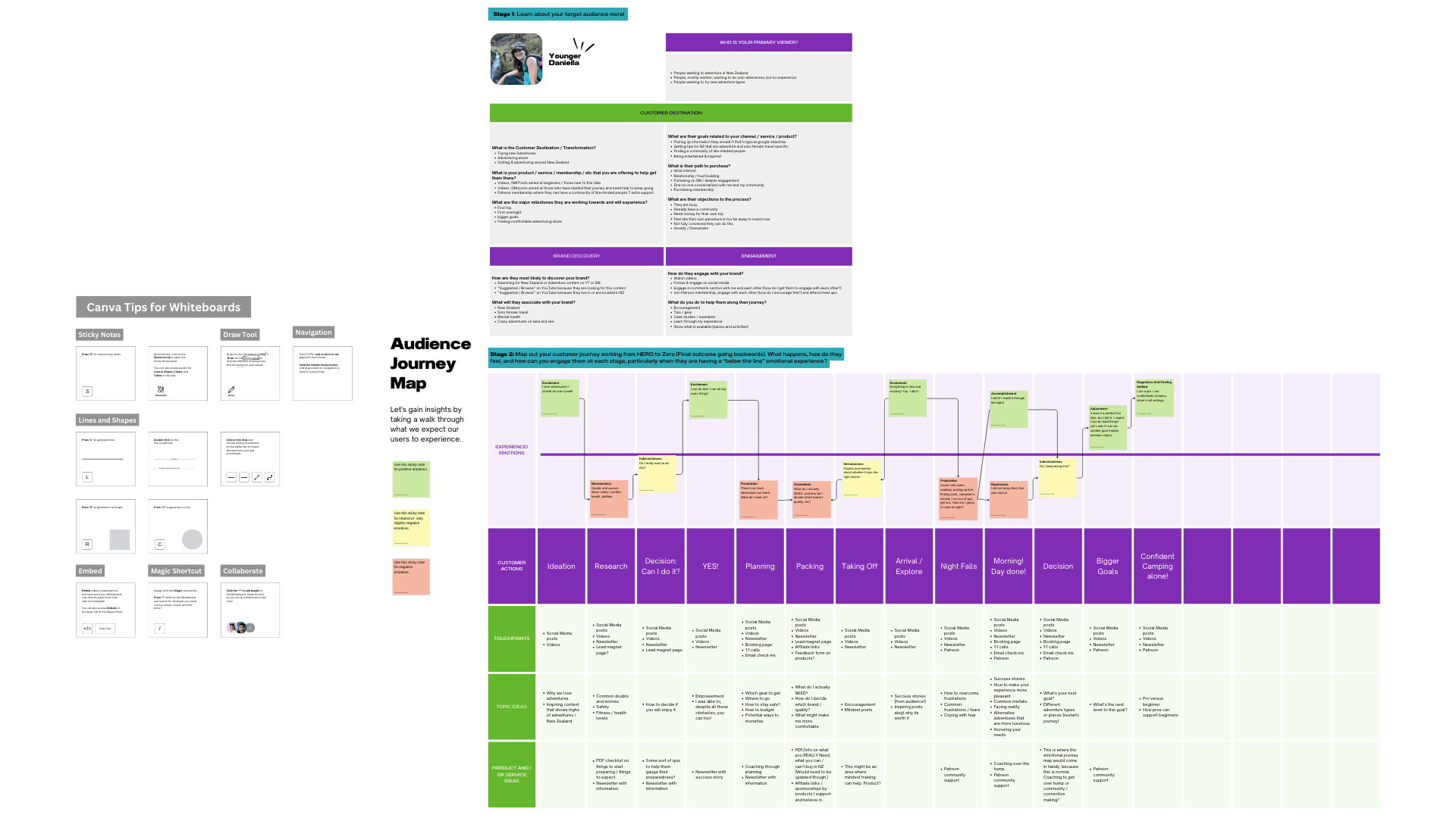 - Now that you know where you are taking your audience, what does each stage of their journey look like?